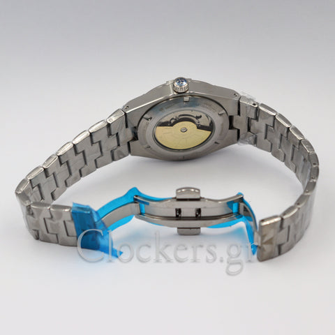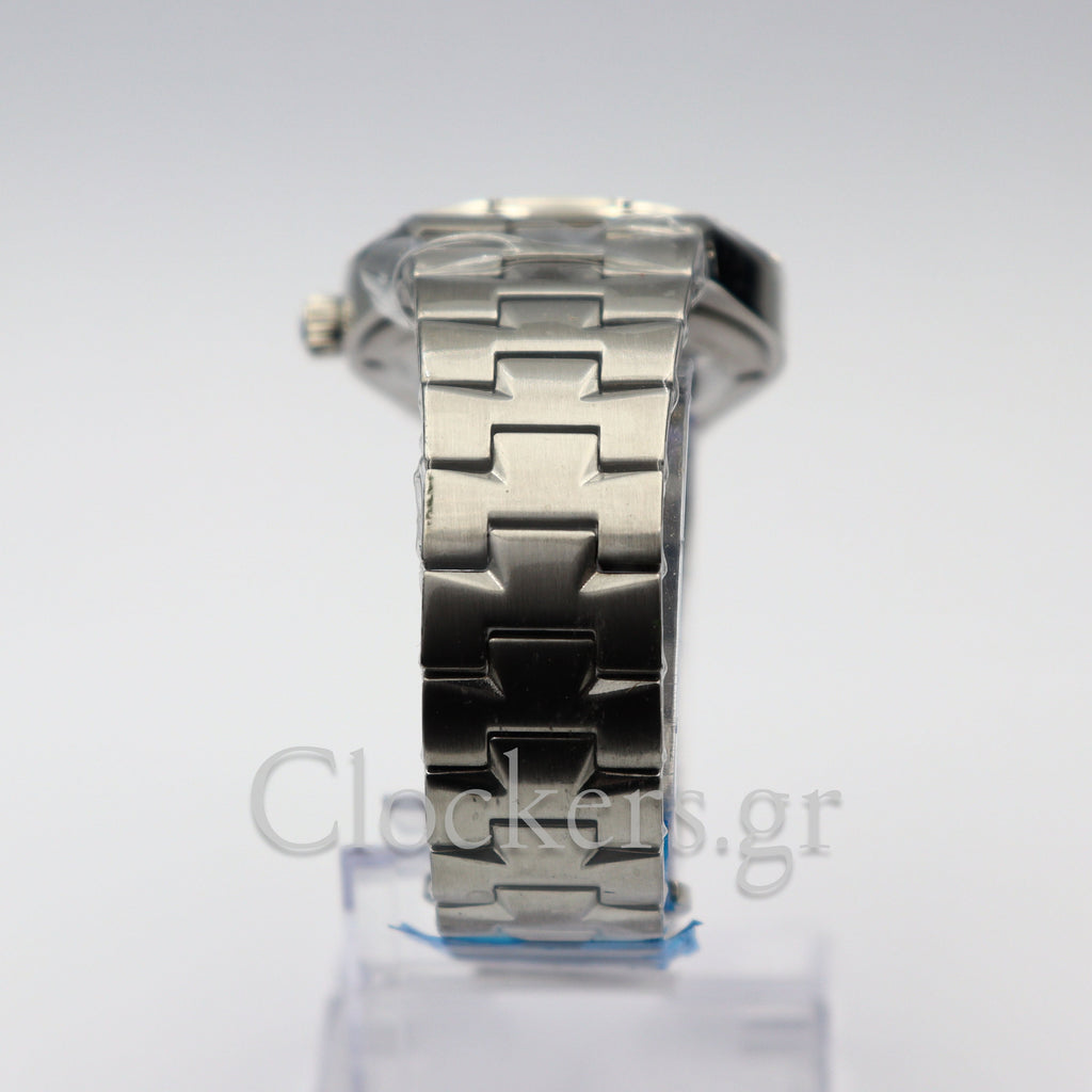αδιάβροχο, στεγανοποιημένο έως 0 bar και έχει ρυθμιστική βίδα με ανάγλυφη κορόνα. Ο ζαφειρένιος κρυστάλλος είναι αρκετά ανθεκτικός σε γρατσουνιές