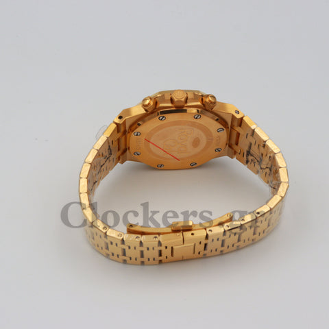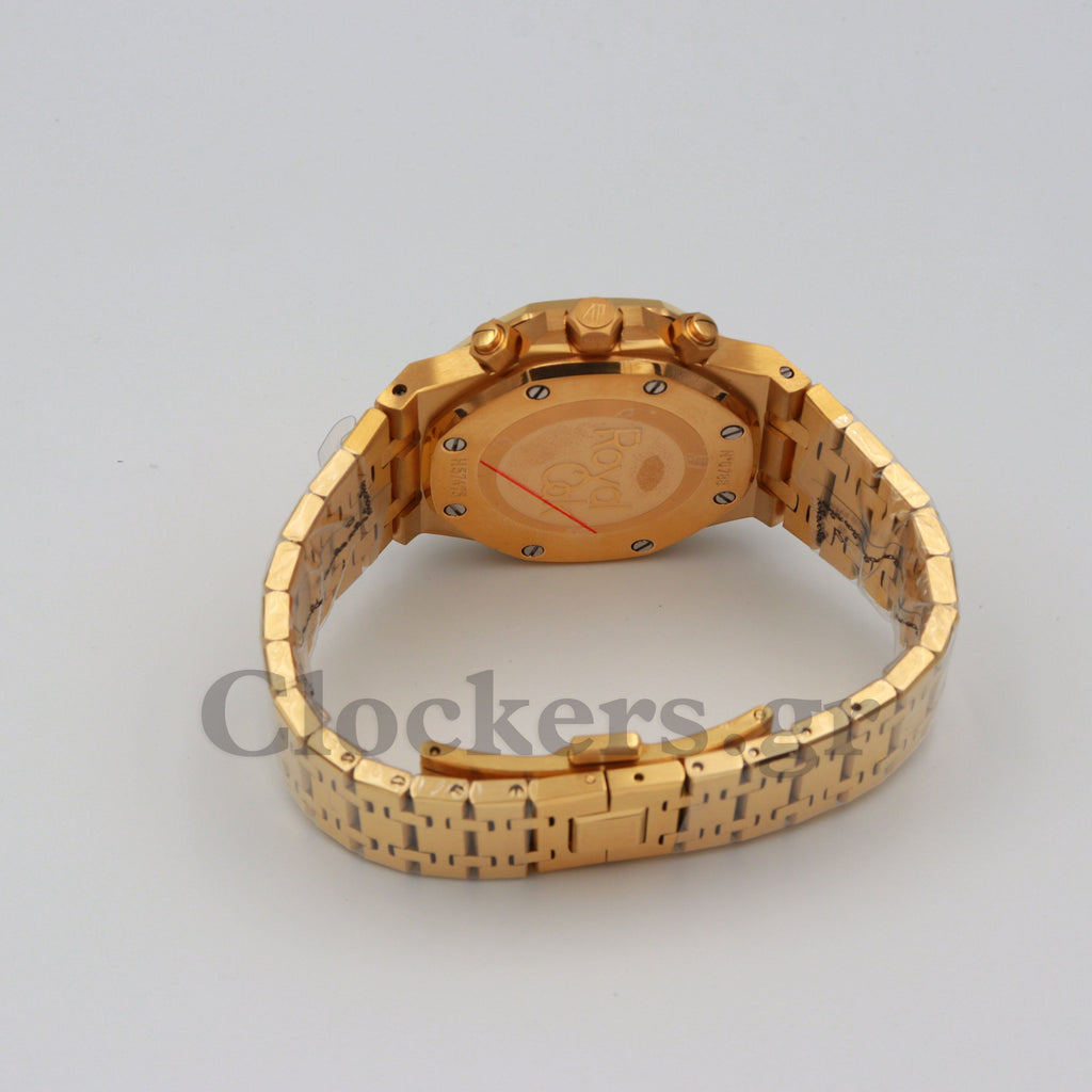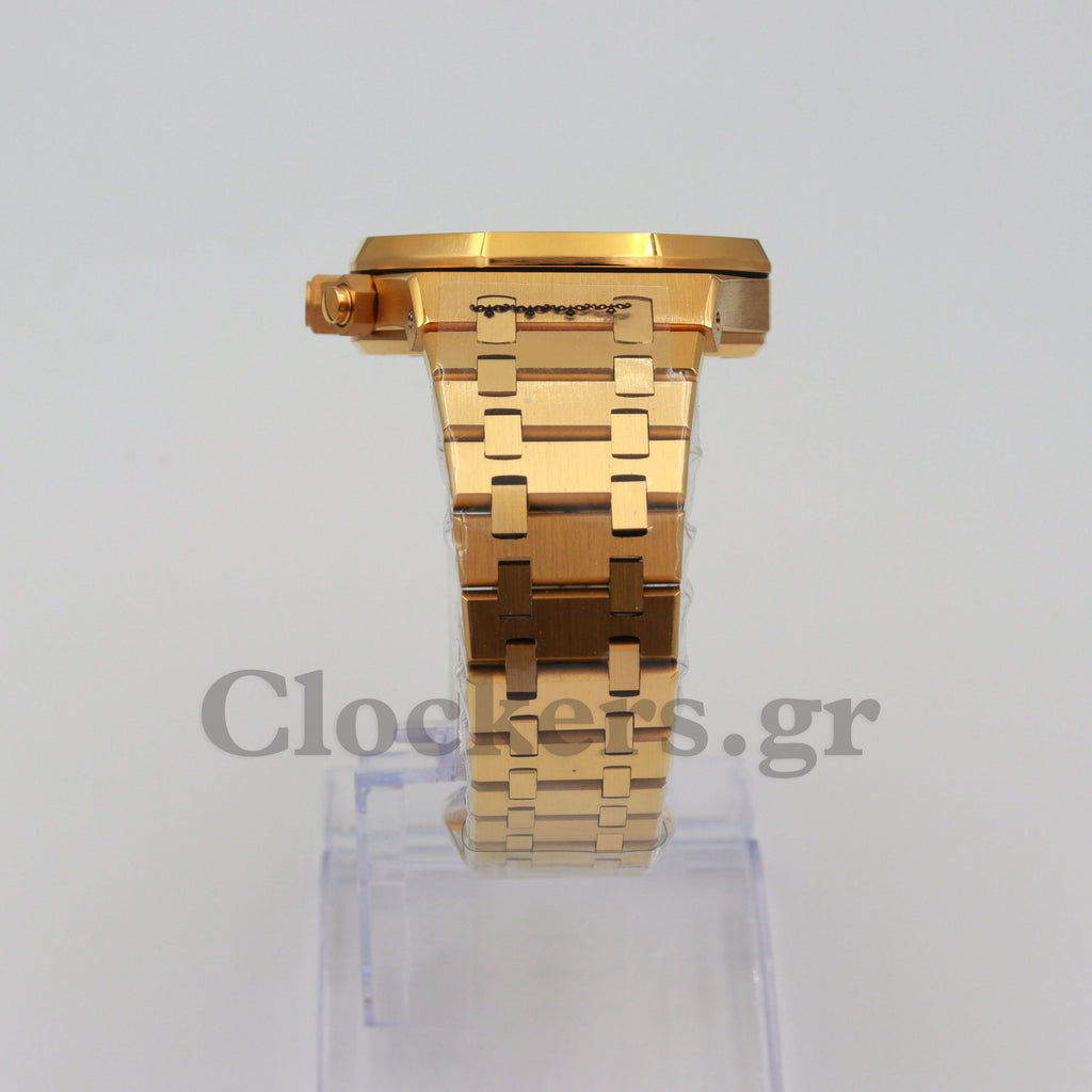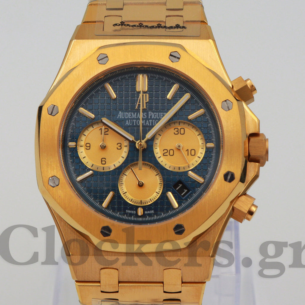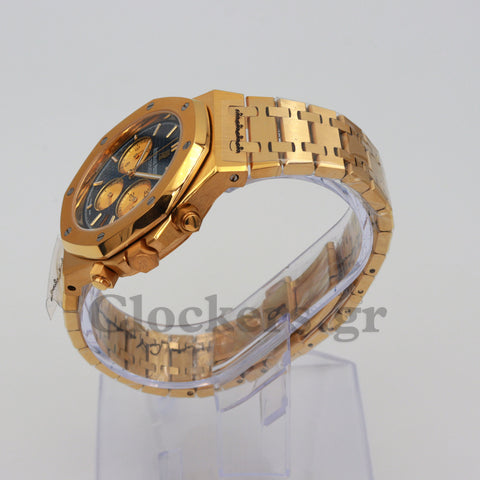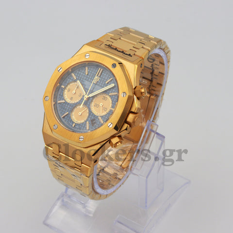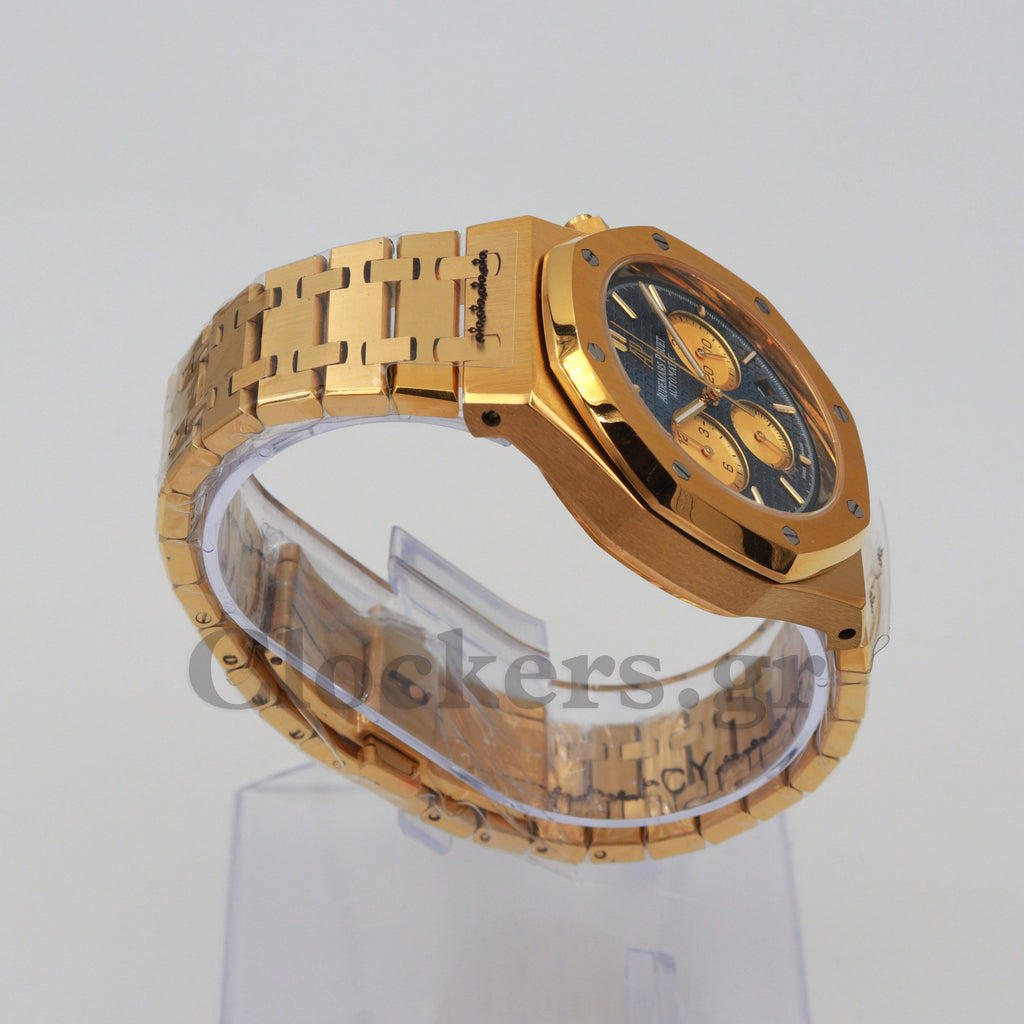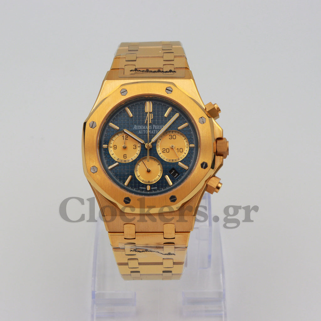 Το μοντέλο Replica Audemars Piguet Royal Oak Chronograph 41mm Yellow Gold Blue Dial 26331OR.OO.1220OR.01 έχει αντιγραφεί με τις τελευταίες και πιο σύγχρονες τεχνικές δημιουργίας πιστών αντιγράφων Replica AAA, έτσι ώστε ακόμη και αν ανοιχτεί από οποιοδήποτε κοσμηματοπωλείο, ο μηχανισμός (διαθέτει Top Quality Japanese “MIYOTA” Movement with Fucntional Stopwatch Feature like the Authentic ) να είναι όμοιος όπως τα γνήσια Rolex. Κάθε μέρος του ρολογιού μέσα και έξω έχει αναπαραχθεί με τα ακριβή γραμμάρια που έχουν μεμονωμένα και συνολικά τα εξαρτήματα του γνήσιου Audemars Piguet .
