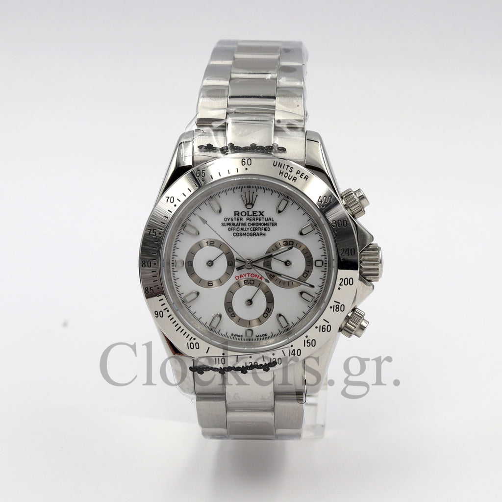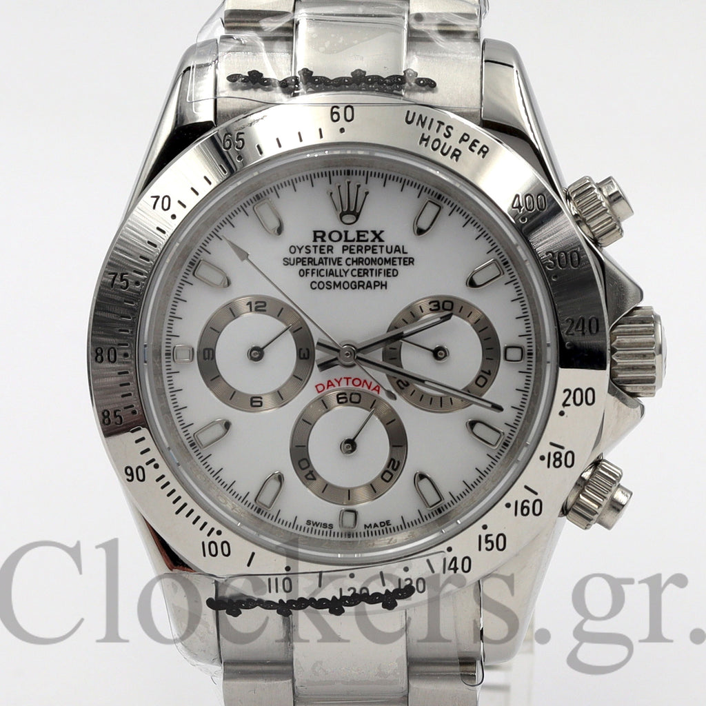 Το διαχρονικό μοντέλο Replica Cosmograph Daytona White  Dial SS 40mm  έχει αντιγραφεί με τις τελευταίες και πιο σύγχρονες τεχνικές δημιουργίας πιστών αντιγράφων Replica AAA, έτσι ώστε ακόμη και αν ανοιχτεί από οποιοδήποτε κοσμηματοπωλείο.