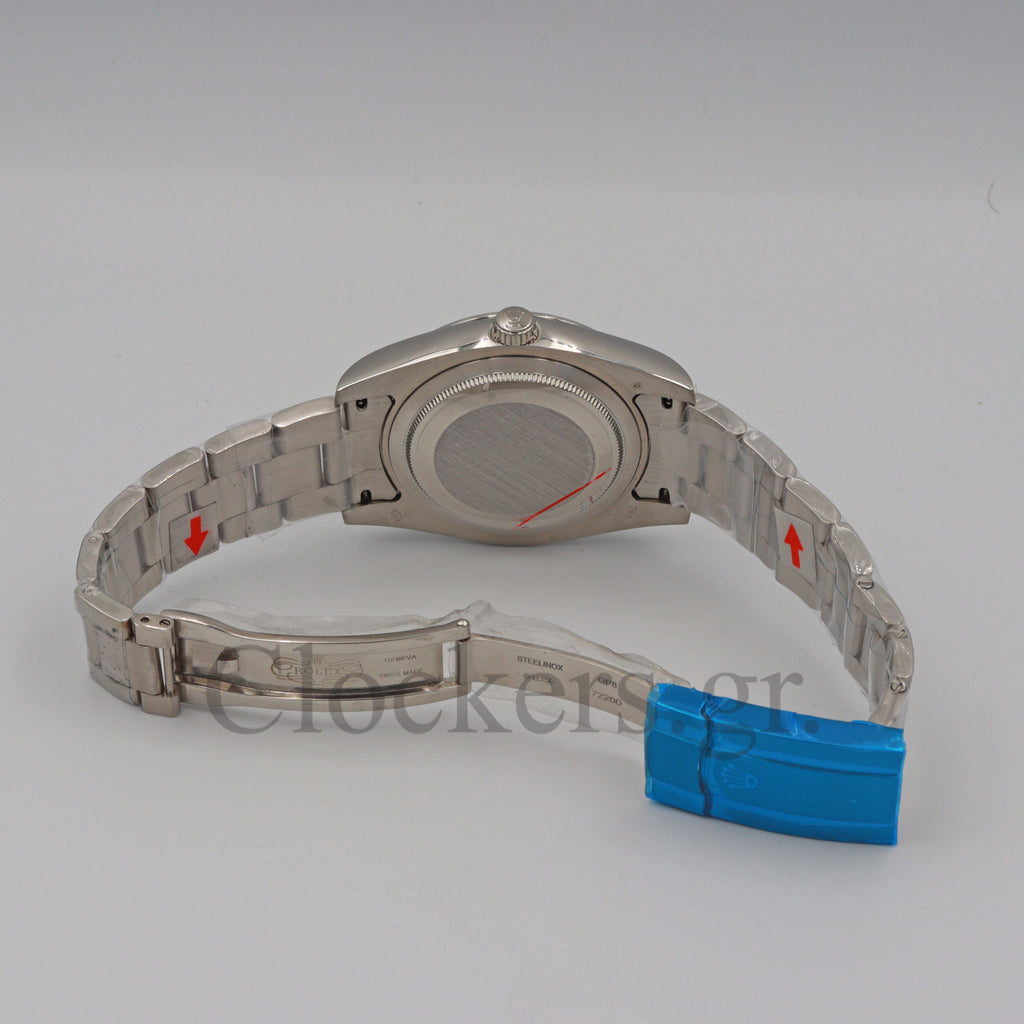 Έχει λειτουργία σε ώρα, λεπτό και δευτερόλεπτο και φέρει ένδειξη ημερομηνίας. Το σώμα είναι κατασκευασμένο από ανεξίτηλο ατσάλι (Stainless Steel), υποαλλεργικό με απόχρωση Τ20 και έχει 10 έτη εγγύηση χρώματος. Το μπρασελέ του έχει αναδιπλούμενο κούμπωμα ασφαλείας Oysterlock με EasyLink 5 χιλιοστών.
