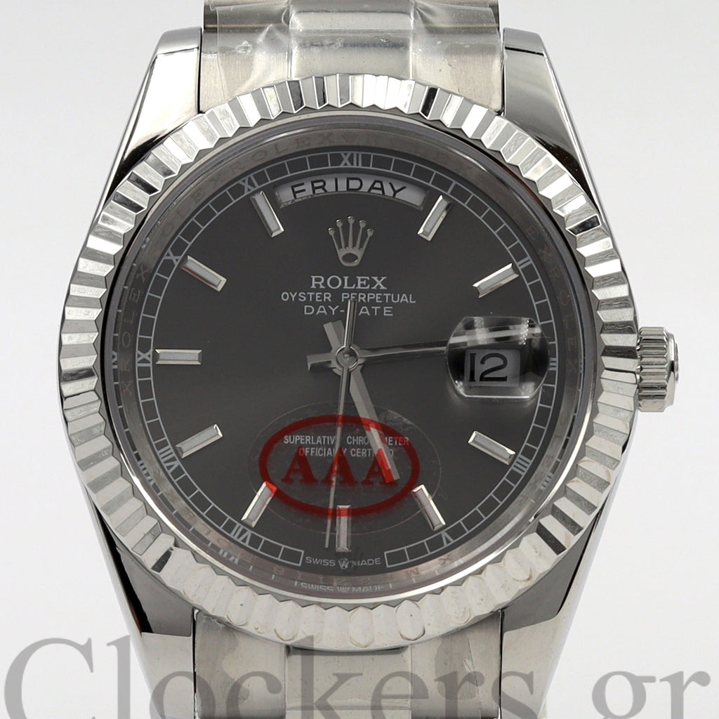Day-Date - Μονομπλοκ βραχίολι, αποσπώμενο στέμμα για εύκολο καθαρισμό ή αντικατάσταση, 41 χιλ. διάμετρος.