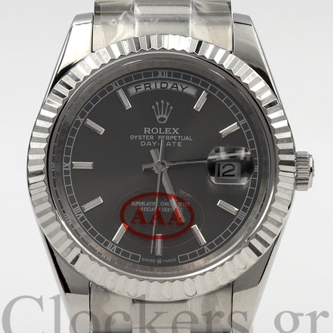 DAY-DATE BLACK DIAL STICKS MARKERS SS 40MM