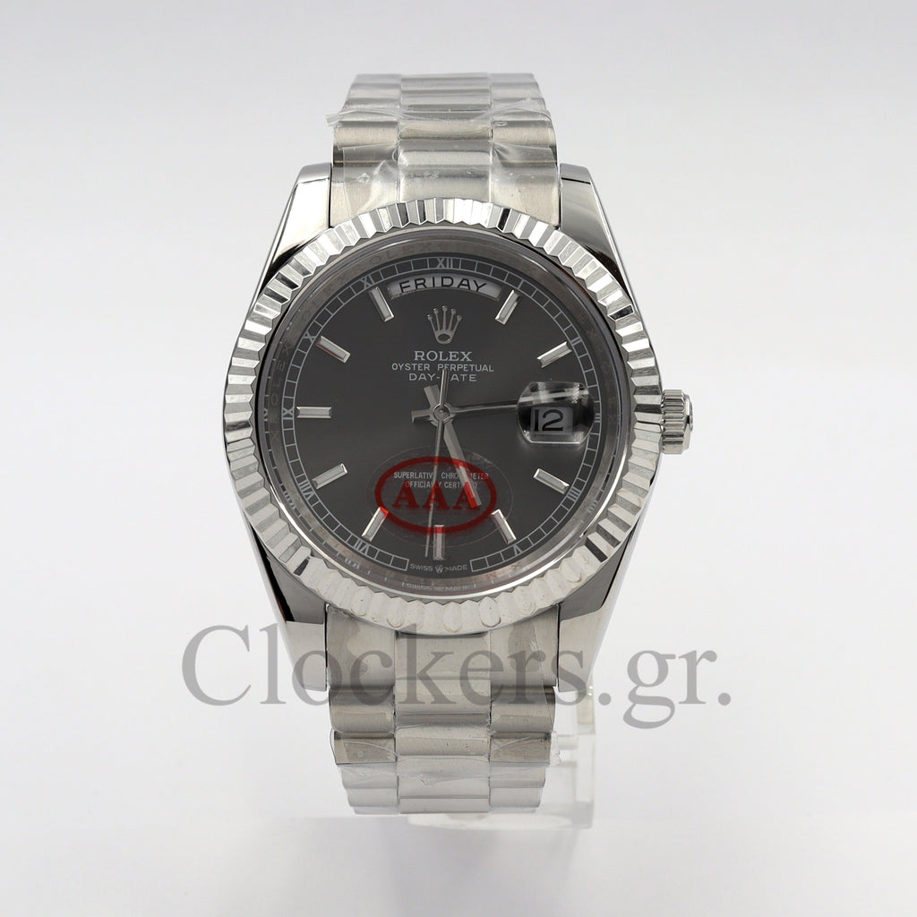 Το διαχρονικό μοντέλο Replica Day-Date Black Dial Sticks Markers SS 40mm  έχει αντιγραφεί με τις τελευταίες και πιο σύγχρονες τεχνικές δημιουργίας πιστών αντιγράφων Replica AAA, έτσι ώστε ακόμη και αν ανοιχτεί από οποιοδήποτε κοσμηματοπωλείο, ο μηχανισμός (διαθέτει Perpetual Type ETA 3135) να είναι όμοιος όπως τα γνήσια Replica . Κάθε μέρος του ρολογιού μέσα και έξω έχει αναπαραχθεί με τα ακριβή γραμμάρια που έχουν μεμονομένα και συνολικά τα εξαρτήματα του γνήσιου Replica .