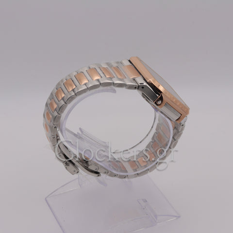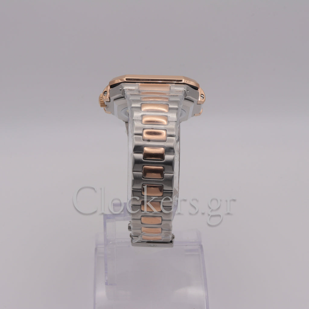 ανεξίτηλο ατσάλι (Stainless Steel), υποαλλεργικό με απόχρωση Τ20 και έχει 10 έτη εγγύησης χρώματος . Το μπρασελέ του έχει α ναδιπλούμενο κούμπωμα ασφαλείας Oysterlock με EasyLink 5 χιλιοστών .