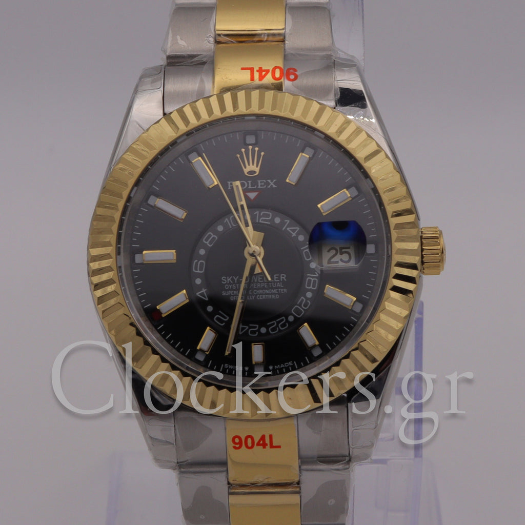 Το διαχρονικό μοντέλο Sky-Dweller 2-Tone Black Dial Stick Markers έχει αντιγραφεί με τις τελευταίες και πιο σύγχρονες τεχνικές δημιουργίας πιστών αντιγράφων Replica AAA, έτσι ώστε ακόμη και αν ανοιχτεί από οποιοδήποτε κοσμηματοπωλείο, ο μηχανισμός (διαθέτει Perpetual Type ETA 3135) να είναι όμοιος όπως τα γνήσια Replica .