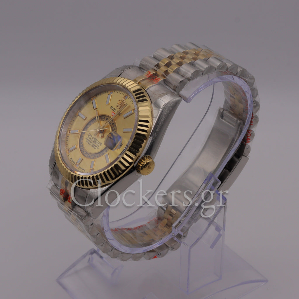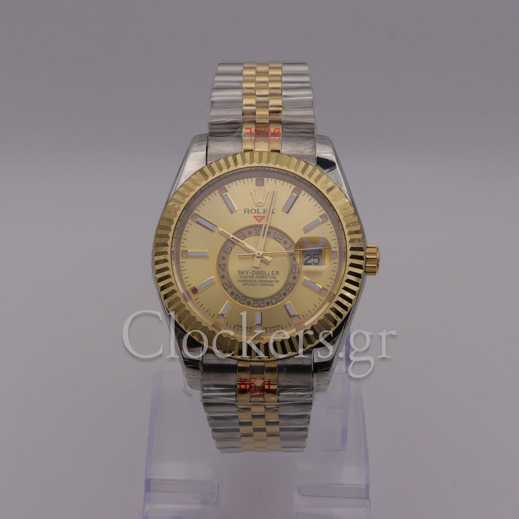 Το διαχρονικό μοντέλο Sky-Dweller 2-Tone Black Gold Dial Stick Markers έχει αντιγραφεί με τις τελευταίες και πιο σύγχρονες τεχνικές δημιουργίας πιστών αντιγράφων Replica AAA, έτσι ώστε ακόμη και αν ανοιχτεί από οποιοδήποτε κοσμηματοπωλείο, ο μηχανισμός (διαθέτει Perpetual Type ETA 3135) να είναι όμοιος όπως τα γνήσια Replica .