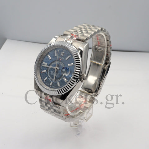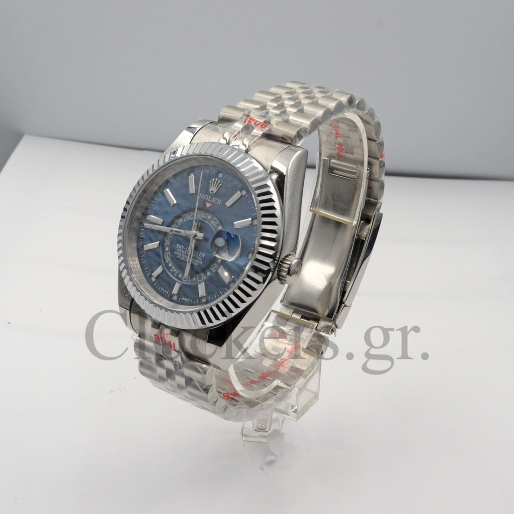Το διαχρονικό μοντέλο Sky-Dweller Blue Dial Automatic Men's Watch έχει αντιγραφεί με τις τελευταίες και πιο σύγχρονες τεχνικές δημιουργίας πιστών αντιγράφων Replica AAA, έτσι ώστε ακόμη και αν ανοιχτεί από οποιοδήποτε κοσμηματοπωλείο, ο μηχανισμός (διαθέτει Perpetual Type ETA 3135) να είναι όμοιος όπως τα γνήσια Replica .