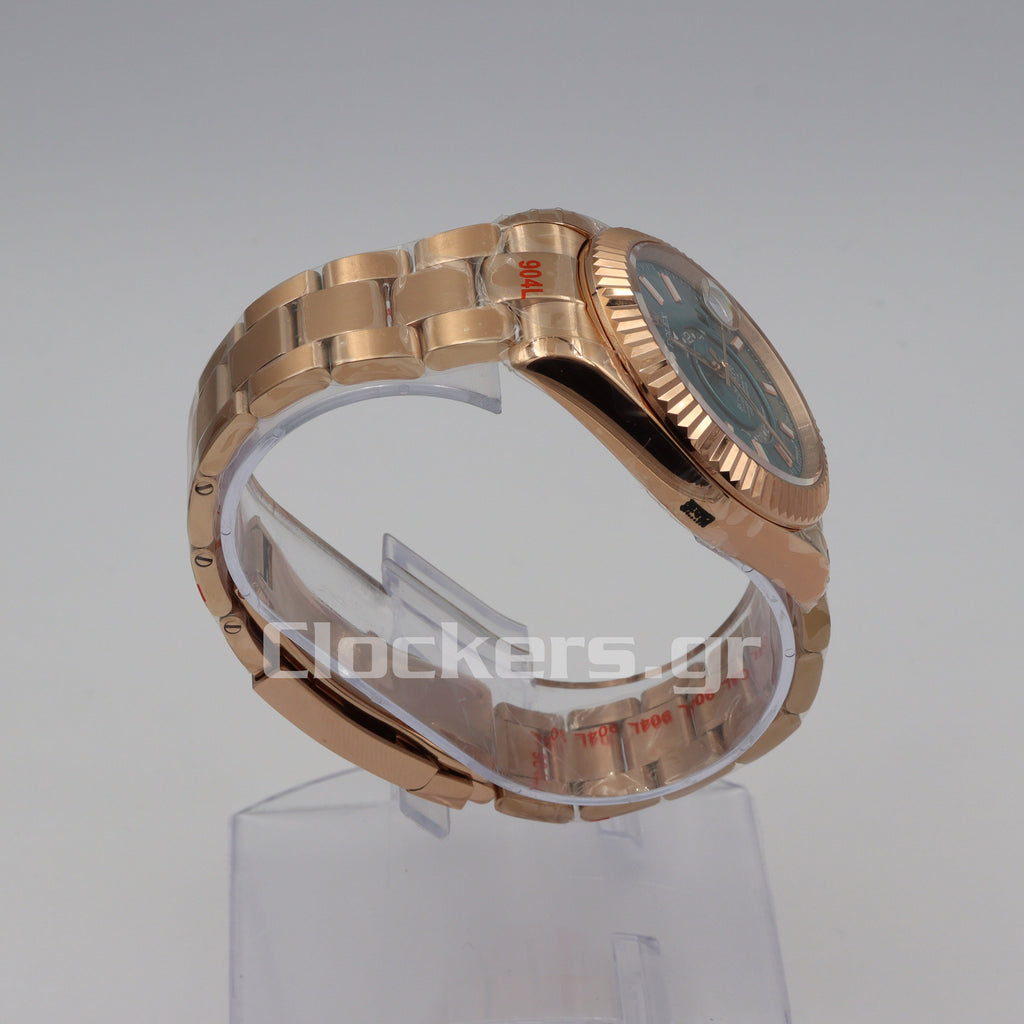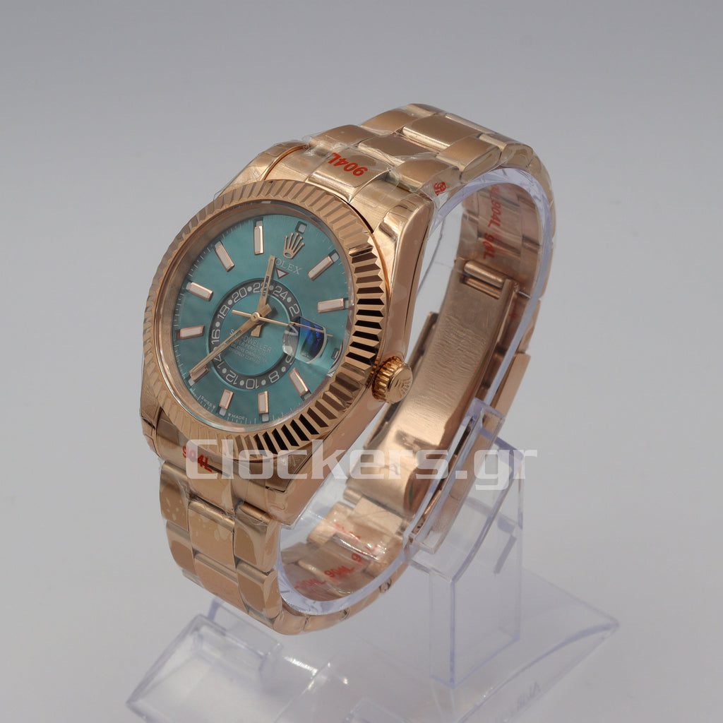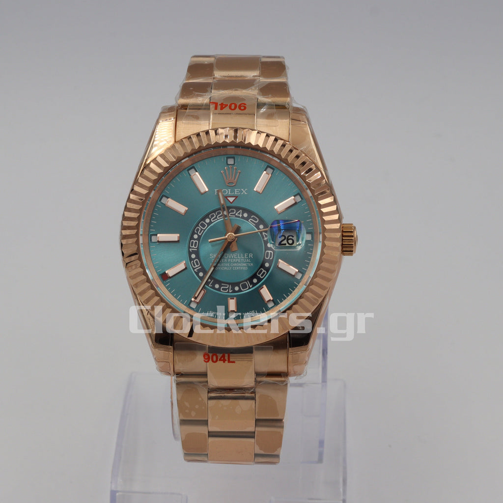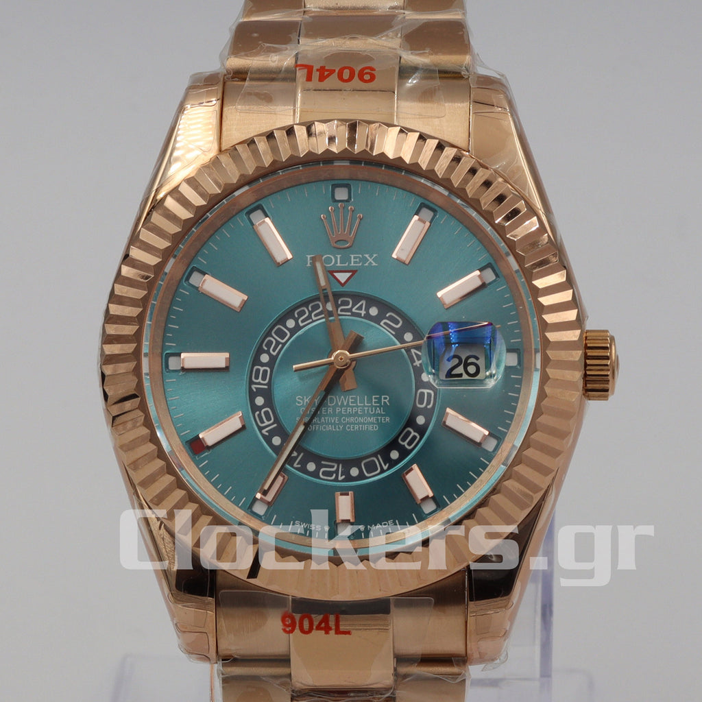 Το διαχρονικό μοντέλο Sky-Dweller Gold  Stick Markers έχει αντιγραφεί με τις τελευταίες και πιο σύγχρονες τεχνικές δημιουργίας πιστών αντιγράφων Replica AAA, έτσι ώστε ακόμη και αν ανοιχτεί από οποιοδήποτε κοσμηματοπωλείο, ο μηχανισμός (διαθέτει Perpetual Type ETA 3135) να είναι όμοιος όπως τα γνήσια Replica .