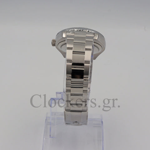 αδιάβροχο, στεγανοποιημένο έως 10 bar και έχει ρυθμιστική βίδα με ανάγλυφη κορόνα. Ο ζαφειρένιος κρυστάλλος είναι αρκετά ανθεκτικός σε γρατσουνιές και έχει μεγέθυνση (επιπέδου 2.5x) πάνω από την ημερομηνία.