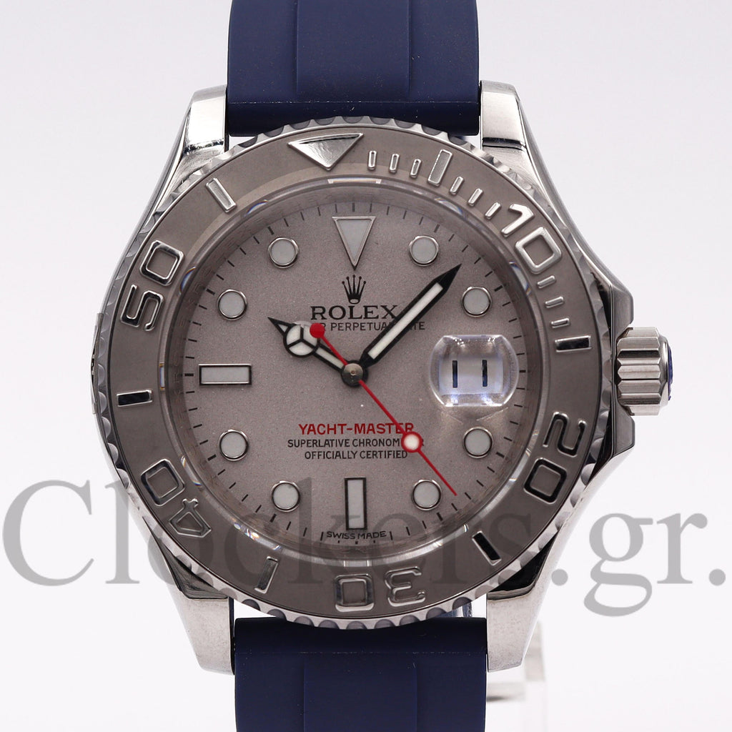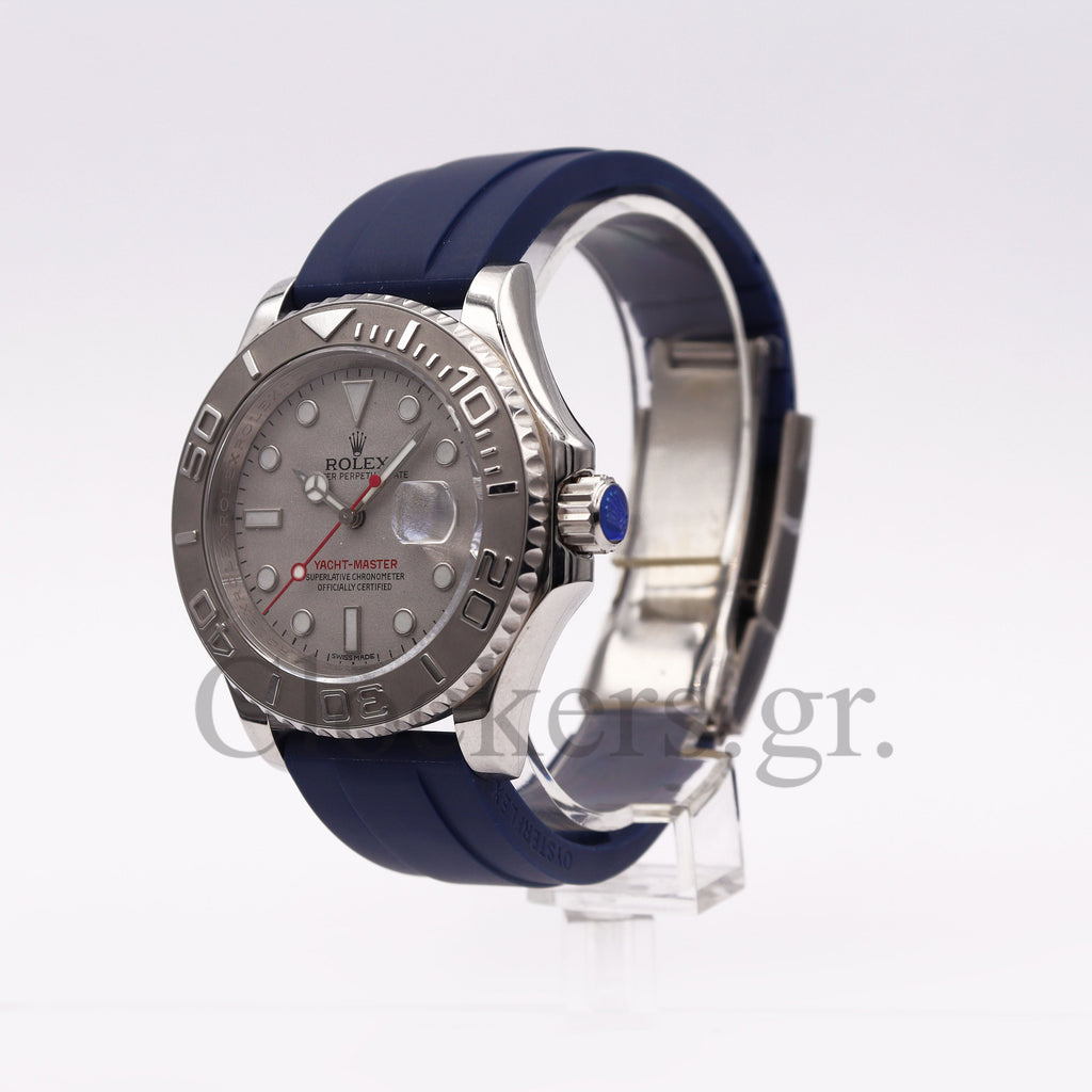 Yacht-Master Platinum Dial Oyster 16622 42mm Rubber Strap Blue